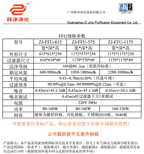 說明:標(biāo)準(zhǔn)FFU1175*575*250的一般有現(xiàn)貨,其它標(biāo)準(zhǔn)FFU需要訂制,一般貨期7天內(nèi)。
