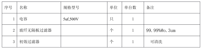 FFU定期維護(hù)項(xiàng)目包括馬達(dá),風(fēng)機(jī),電氣部件等。QQ圖片20151203120008表 4 ?消耗性部件的更換期間 ( 我司建議 )