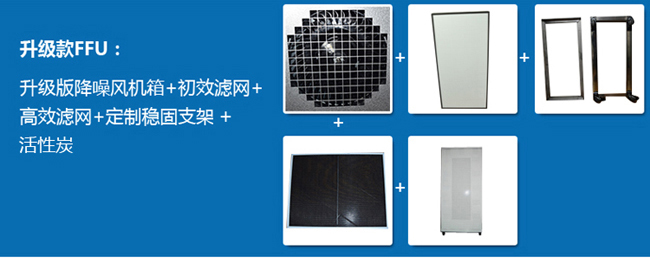 3、FFU箱體與高效過濾器為分離式,便于以后更換過濾器,高效過濾器一般為12個(gè)月左右更換一次。