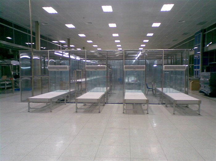 4、防靜電垂簾門實(shí)現(xiàn)生產(chǎn)車間達(dá)到理想的凈化空間。流水線潔凈棚潔凈組裝流水線生產(chǎn)潔凈棚|潔凈組裝流水線功能介紹: