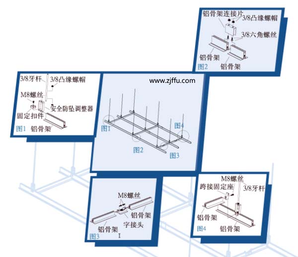 1.核對基準(zhǔn)線一核對基準(zhǔn)標(biāo)高線一吊桿預(yù)制一放樣吊桿安裝一吊桿安裝一吊頂龍骨預(yù)制一吊頂龍骨安裝一吊頂龍骨水平調(diào)整一吊頂龍骨定位一十字補(bǔ)強(qiáng)片安裝一測量畸零龍骨尺寸一界面收邊一吊頂龍骨壓蓋安裝一吊頂龍骨水平調(diào)整。